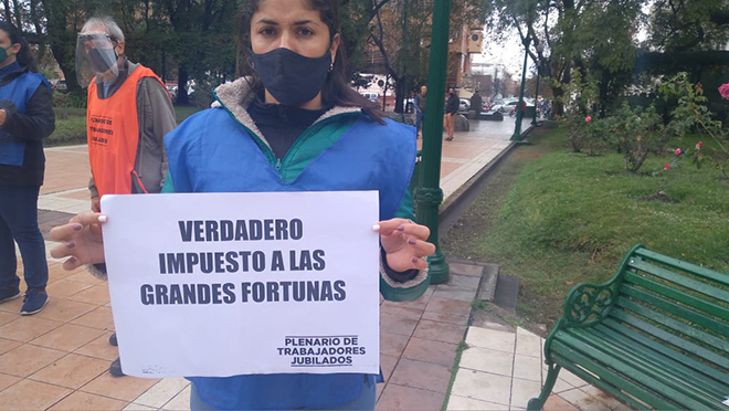 Vacunas para todos, defensa de las cajas provinciales, derogación de la Ley de Emergencia de Bordet, movilidad automática, basada en la inflación o en el aumento de sueldos, lo mejor, aumento de emergencia de $15000, mínima de $ 65.000, moratoria general para los miles de adultos mayores que no llegan a los 30 años de aporte, restitución de los aportes patronales, un Impuesto a las grandes fortunas, no al pago de deuda. Ruptura con el FMI.