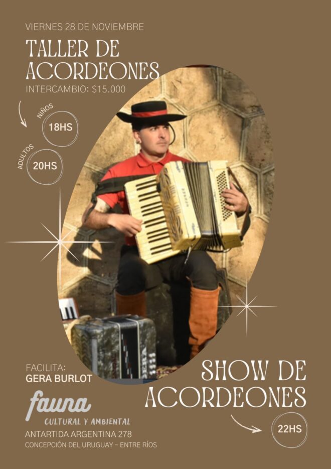 Entrada no excluyente para el show de acordeones. Valor a voluntad.
