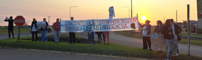 "La misma acción se llevó a cabo de manera conjunta en todos los departamentos de Entre Ríos y contó con la participación de cientos de compañeras y compañeros docentes de cada rincón de la provincia", agregaron.