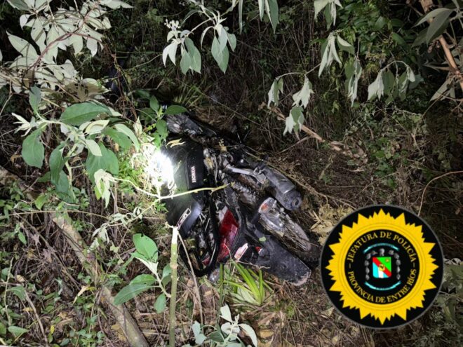 Con los datos recabados, el personal policial inició un rastrillaje en una zona de baldíos ubicada entre las vías del ferrocarril y la mencionada avenida. Como resultado de la búsqueda, se logró localizar una motocicleta Honda Wave 110cc, de color tornasolado (violeta y azul), la cual se encontraba sin su dominio colocado y oculta entre la vegetación.
