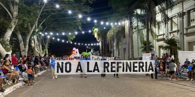 Este sábado por la noche, vecinos de Colón volvieron a movilizarse para decir “no” al proyecto de la empresa HIF Global en Paysandú, frente a la ciudad.