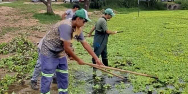 Cuadrillas municipales y cooperativas de trabajo realizan manualmente la remoción de la vegetación acuática para mejorar el estado del espejo de agua sin alterar su equilibrio biológico. Las tareas forman parte del cronograma de mantenimiento diagramado para los espacios públicos.