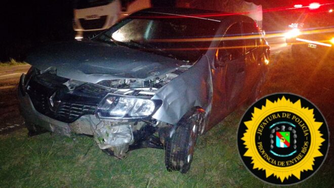 Un siniestro vial ocurrió en la noche de este domingo 2 de febrero en la Ruta Provincial N° 39, sobre la cabecera oeste del puente del Río Gualeguaychú. A pesar de la magnitud del impacto y el posterior vuelco, no se registraron personas lesionadas.