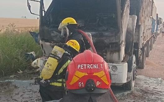 El camión se encontraba estacionado en la zona para realizar tareas de descarga de trigo cuando se originó el fuego. El personal de Bomberos logró sofocar las llamas rápidamente.