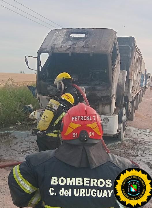 A las 17.45 de este viernes 28 de noviembre en la Autovía Nacional 14 (Colectora, Kilómetro 116), un camión que se encontraba estacionado a la vera de la Ruta Nacional 14 sufrió un incendio. La rápida intervención de los bomberos evitó que el foco ígneo se propagara, registrándose solo daños materiales.