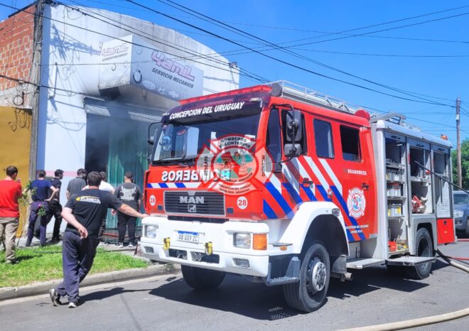 Apróximadamente a las 14 de este martes 14 de octubre los bomberos de Concepción del Uruguay fueron alertados sobre un incendio en un taller mecánico con vehículos en su interior ubicado en Isaías Torres al 330.