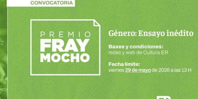 Se trata de la máxima distinción literaria otorgada por el Gobierno de Entre Ríos, que se realiza a través de la Secretaría de Cultura provincial. Se recibirán trabajos hasta el viernes 29 de mayo de 2026 a las 13hs. La inscripción puede hacerse de manera virtual o física.