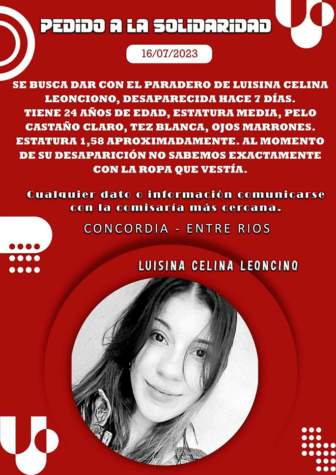 La Policía y la Justicia buscan a la joven concordiense de 24 años que dejó de comunicarse con su familia durante el domingo 9 de julio.
