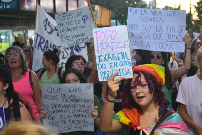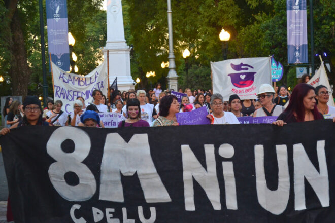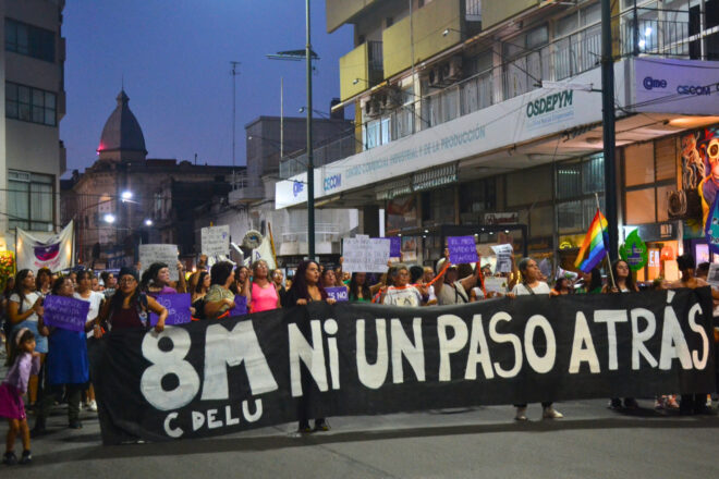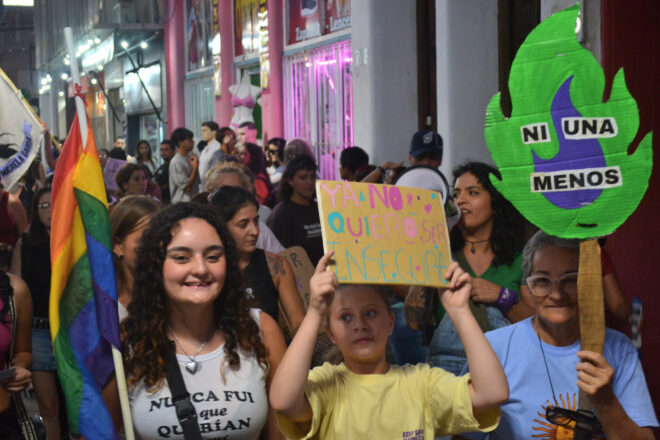 En la Argentina del gobierno encabezado por Javier Milei, la precarización de la vida para mujeres y diversidades se refleja en las estadísticas. “Lo que vemos no es libertad, es dependencia: es no poder irte de un trabajo, de una situación de violencia, de una vida que no querés. Por eso decimos claro: sin autonomía económica no hay libertad”, expresaron durante la movilización que recorrió el centro de la ciudad. Participaron diferentes organizaciones y colectivos feministas como la Asamblea Transfeminista, la Fundación Micaela García, Agmer Uruguay, ATE, MTE, Las Violetas, Poder Popular, Mujeres Unidas, Plenario de Trabajadoras y la Agrupación Carlos Fuentealba.