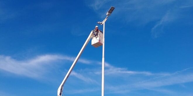 Avanzan en los recambios en la avenida Juan José Bruno, desde la rotonda del Monumento a Urquiza hacia el oeste, previendo llegar en estos días a calle 35 del Oeste, con un total de 94 luminarias nuevas de 300 watt de potencia.