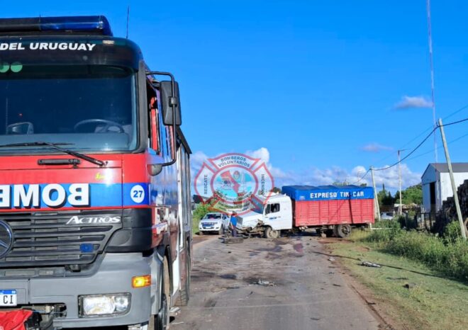 El camión circulaba por Rodríguez Artusi en sentido oeste-este, cuando el automóvil, que venía en sentido contrario (este-oeste) lo impactó al camión en su parte frontal.