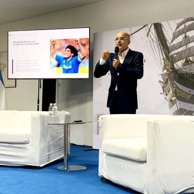 Arcucci es considerado uno de los periodistas que más cerca estuvo de Maradona por décadas. Durante 34 años y 11 meses, Diego como protagonista y Arcucci como interlocutor, fueron forjando su vínculo. Arcucci tanbién escribió otras obras como “Yo soy el Diego, de la Gente” además de “Conocer al Diego” y “Jamás me voy a olvidar”.