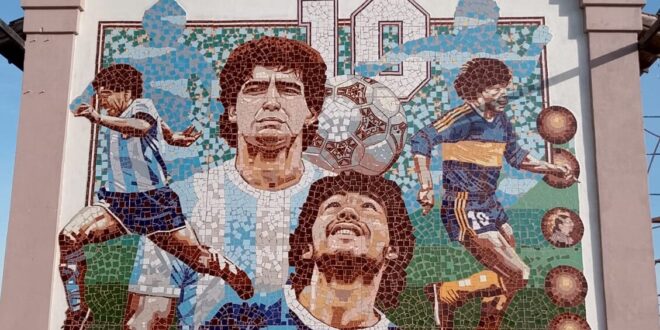 La ciudad de Hernández (departamento Nogoyá) festejará el primer aniversario de la inauguracion del mural mas grande del país realizado en la tecnica del mosaiquismo en honor a Diego Armando Maradona, mural cuyo autor es el diamantino Néstor Medrano, radicado desde hace años en Gualeguay.