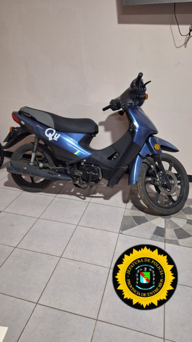En el lugar, se halló una motocicleta SIAM QU 110, tratandose de la sustraida recientemente. La motocicleta fue secuestrada y se dio intervención a la División Policía Científica, informándose de la novedad a la Unidad Fiscal en turno.