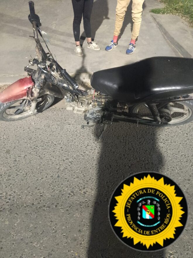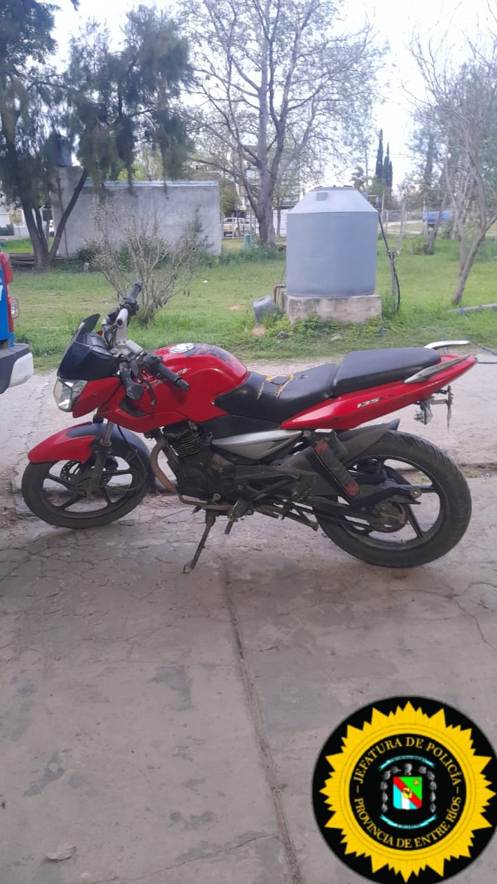 El hecho ocurrió a las 5.20 mientras personal de la Comisaría Segunda realizaba una recorrida jurisdiccional por la calle Walsh María Elena. En ese momento, los efectivos observaron a un masculino arrodillado junto a una motocicleta marca Bajaj, modelo Rouser, en Intendente González. El rodado en cuestión tenía una cadena de seguridad colocada en la rueda trasera.