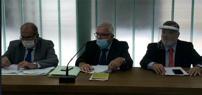 Los abogados defensores de Urribarri (de izquierda a derecha): Candelario Pérez, Raúl Barrandeguy y Juan Méndez.