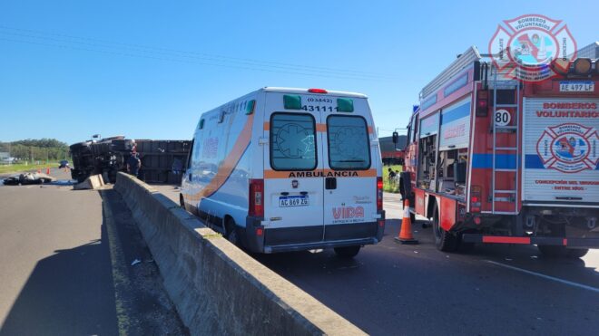 En la tarde de este martes 3 de diciembre en horas de la siesta volcó un camión en la ruta 14, a la altura del INTI.