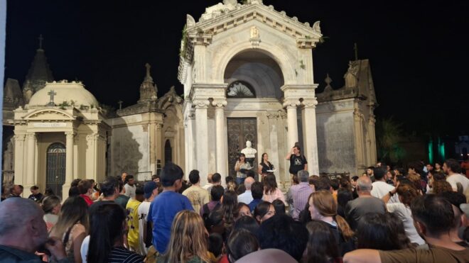 Emma Grianta de Cartosio, Luis Alberto Ruiz, Delio Panizza, Daniel Elías y Teresa Fabani “dialogaron” simbólicamente bajo las estrellas, junto a integrantes de familias históricas como los Calvento y los descendientes de Justo José de Urquiza. “Ellos vibran aquí, respiran, resisten al paso del tiempo. Recordarlos desde la admiración y el respeto es también hacer una ofrenda”, expresó González durante la recorrida. La experiencia propuso un momento sensible y reflexivo, donde la memoria colectiva resonó entre mármoles, lápidas y un cielo abierto que parecía acompañar la ceremonia.