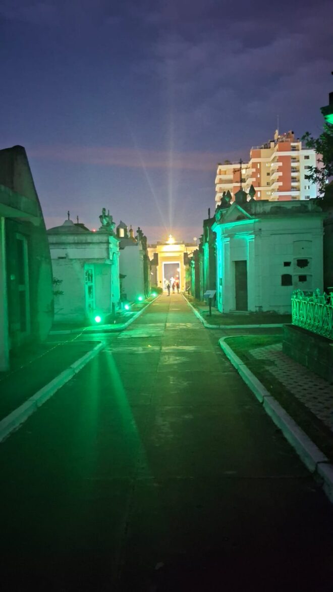 Más allá del circuito tradicional, la Noche de los Museos también se extendió hacia un escenario tan inesperado como conmovedor: el Cementerio Municipal, que abrió sus portones para una visita guiada nocturna coordinada por la escritora Ana María González y su directora Guillermina Bevacqua. Entre faroles, sombras largas y un respeto casi litúrgico, el público recorrió los pasillos donde la palabra y la música se entrelazaron para traer al presente las voces de figuras populares de la ciudad.